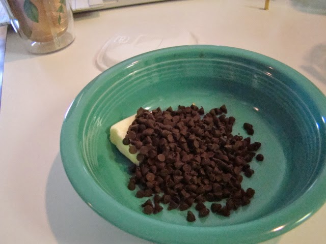 3 Tablespoons semi sweet chocolate chips. Here I would use milk chocolate the next time.