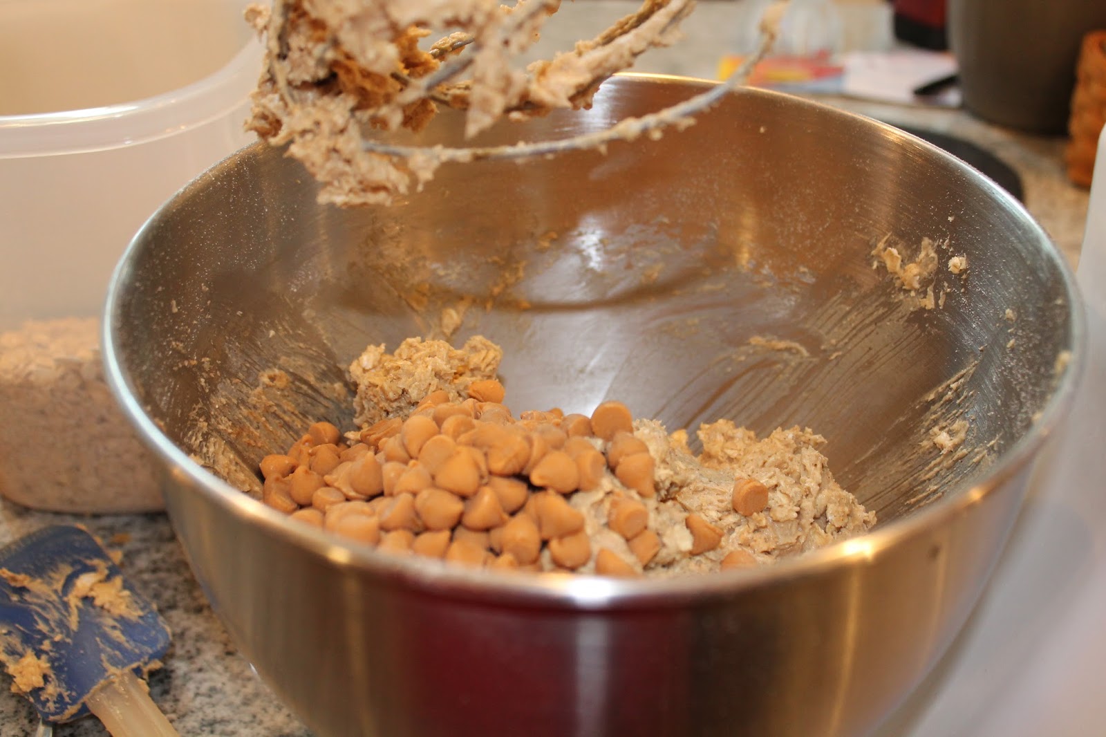 Now add the butterscotch chips. It's okay if you sneak a couple