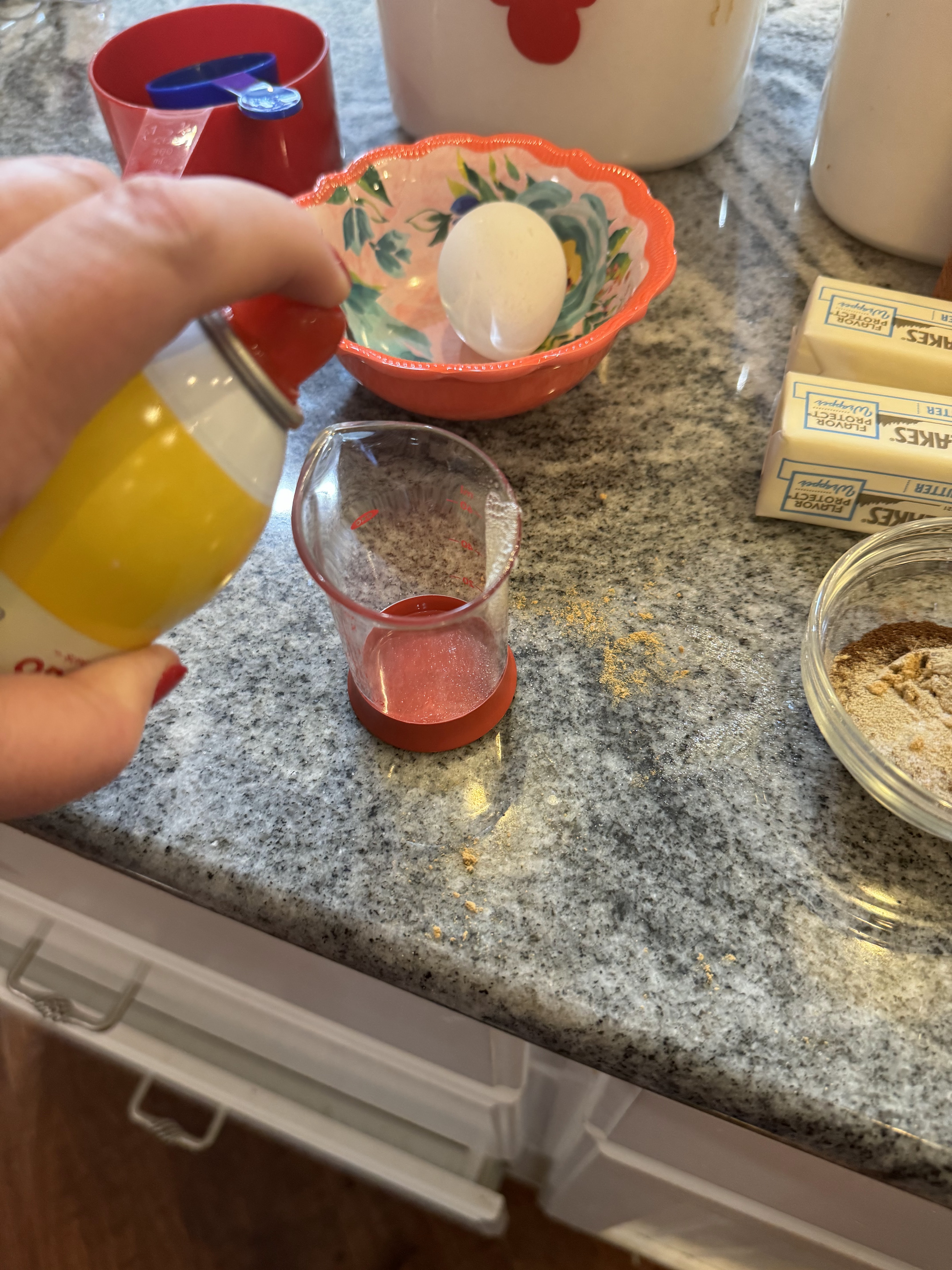 The first thing I do is mix up my spices in a little dish. I measure out all I need for ever how many recipes I am doing before I get started mixing. This is the spices for one recipe.