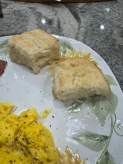 Now how did they compare to the butter swim biscuits. The first thing I noticed was that they did not rise as much as the butter swim. The 4 teaspoons of baking powder really made them rise. Other than that they were pretty similar. I will probably make these again especially if I want biscuits and I don’t have buttermilk. They were good reheated the next two mornings as well.